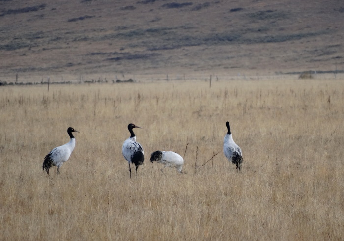 Beskrivelse: Inden for gå-afstand af byen Ruoergai på den Tibetanske højslette ligger der græsslette så langt øjet rækker, og her hen på efteråret er der samlet tusinder af yak-okser og får omkring byen, og også småflokke af Black-necked Cranes.