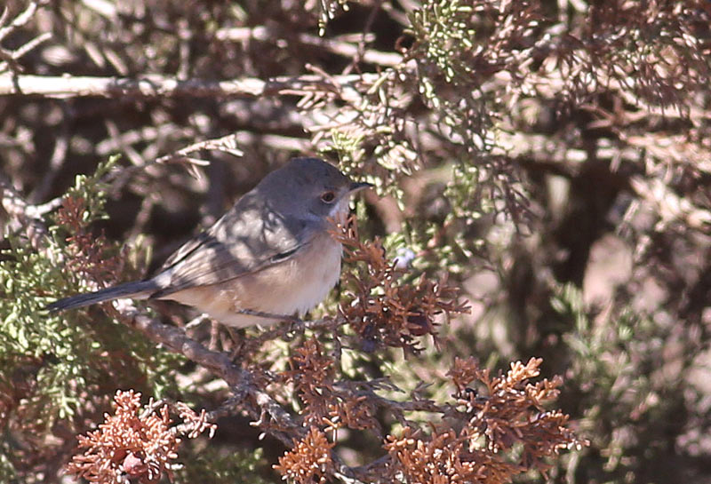 Beskrivelse: Vestlige Hvidskægget Sanger bliver splittet fra østlige. Denne vestlige hun har ganske udbredt rusttoning på bryst og flanker, og afspejler dermed hannens rustorange underside, der kan dække hele underkroppen.