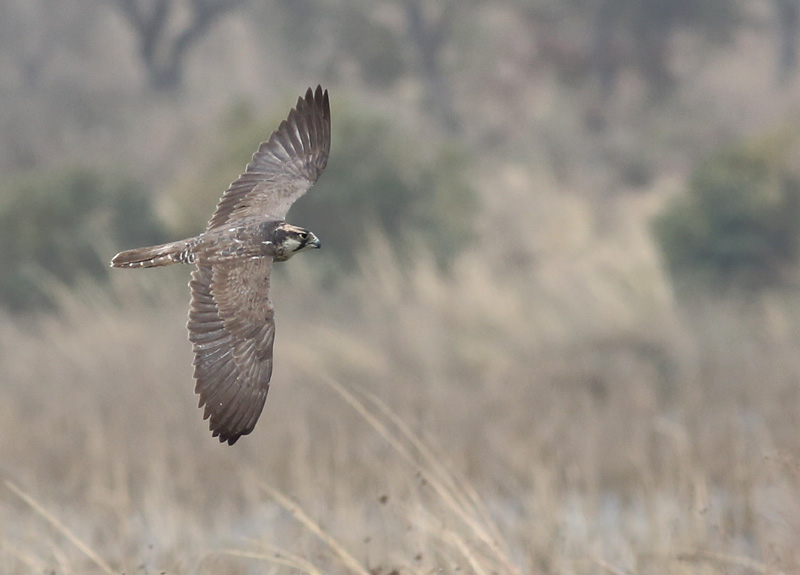 Beskrivelse: Lannerfalken er knapt så voldsom i sin fremtoning som den lignende Slagfalk (og især Jagtfalk), og dens hovedtegninger skarpere afsatte. Den har bred mørk "hestesko" omkring øjnene samt tendens til mrkt diadem over panden, også i ungfuglens dragter. De mellemste halefjer er tit utegnede, som det ses her.