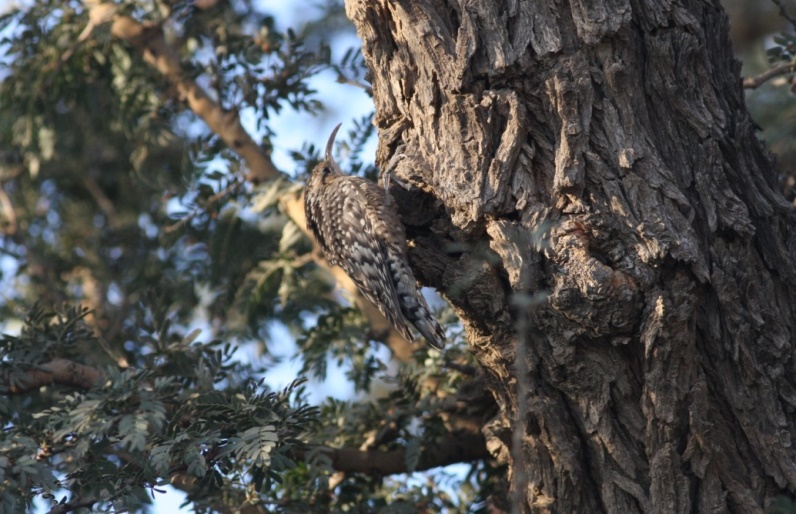 Beskrivelse: Indian Spotted Creeper er endemisk i Indien, og er skilt ud som selvstændig art fra den afrikanske Spotted Creeper. Det lille blackbuck-reservat Tal Chhapar i Rajasthan er nu det eneste sikre, kendte sted at se arten i Indien. Her findes der stadig nogle få fugle i en lille, degraderet akacieskov lige uden for indgangen til reservatet. Tidligere var Spotted Creeper sikker i Bharatpur, men der er den nu ustabil og ses efter sigende kun i regntiden.