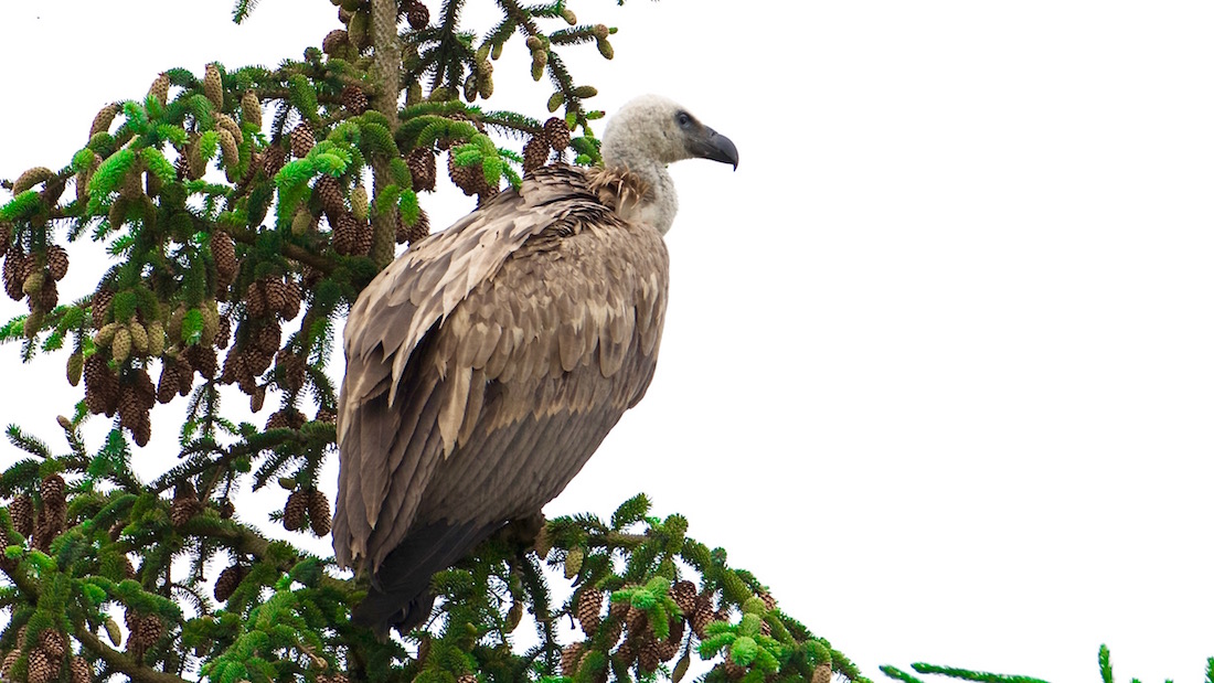 Beskrivelse: Den sidste af en flok på 23 gribbe, som skruede sig op og kredsede mod syd.