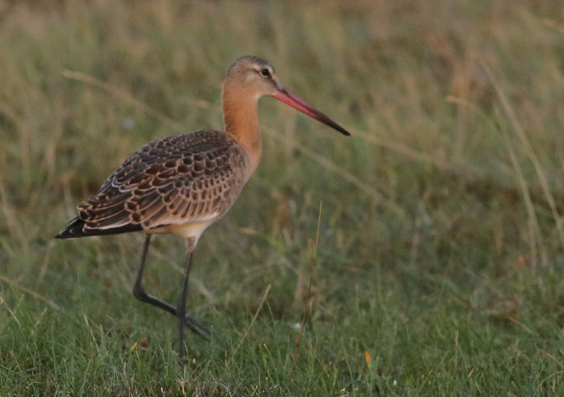 Beskrivelse: Kraftigt farvet 1K af den hjemlige form, limosa med orangetonet hals og varmt gulbrune rande på dækfjerene, som man mere forventer sig hos den isldnaks form, islandica. Her er proportioner vigtige, idet islandica har kortere ben og næb end limosa, som en mellemting mellem Stor og Lille Kobbersneppe. Desudne har islandica typisk bredere lyse markeringer på tertiærerne, der kan have karakter af gennemgående tværbånd som man ser det hos adlt islandica - samt adult Brushane i sommerdragt.