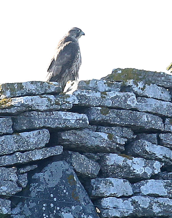 Beskrivelse: Denne Jagtfalk har oversomret omkring Ottenby, hvor der er rige fødemuligheder for sådan én. Den er primo august i fældning i hånden og på kroppen, og således er de fleste af ungfuglenes mørke længdestriber afløst af svagere tegnede, overvejende lyse fjer. Bemærk vanen med at skyde brystet frem og hovedet lidt tilbage, som jeg tit har set hos arten - men ikke hos Vandrefalk