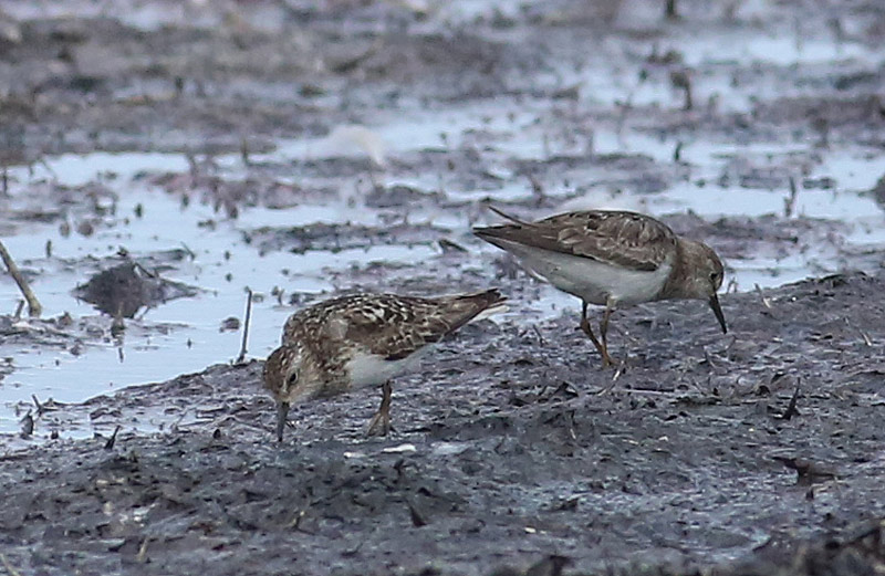 Beskrivelse: Temmincksryler i adult dragt kan se ret forskelligartede ud. Dette skyldes, at mange kun fælder delvist på oversiden, således at oversiden bliver grå med spredte mørke, lyskantede fjer - dette ses på fuglen til højre. I den anden ekstrem findes fugle, der har fældet stort set alle oversidens fjer til sommerdragtens, som det ses hos den venstre fugl. Det var en sådan, der voldte en del hovedbrud for nogle år siden, hvor den blev bestemt til Amerikansk Dværgryle. Denne har dog tydeligere stribet bryst og - vigtigt: kortere bagparti, da Temmincksryle er usædvanligt langstrakt for en småryle.