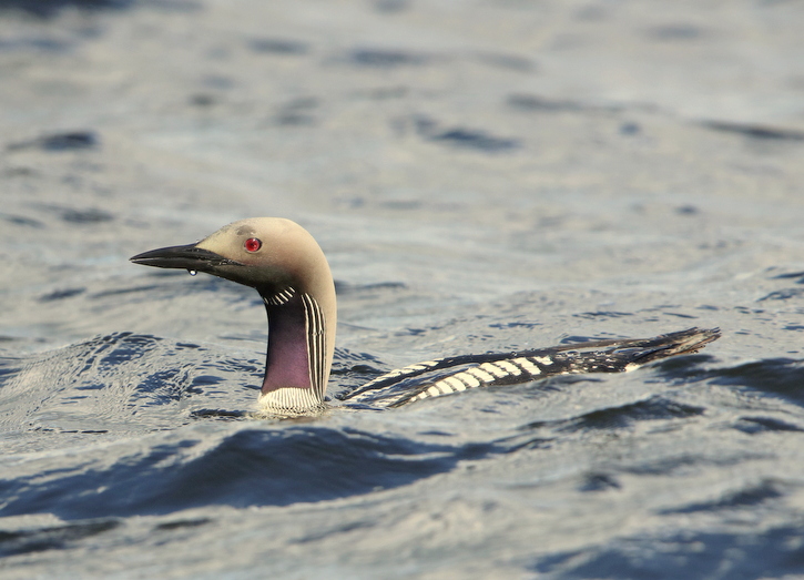 Beskrivelse: Magnificant bird in 'summer-dress'. In good light and not to far away the bird has red eyes and purple throat. So depending on light and distance the name 'black-throated' - makes sense. Big lake and high winds - this bird sure can manage it !