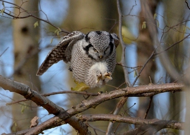 Titel: Høgeugle flyvende og landende