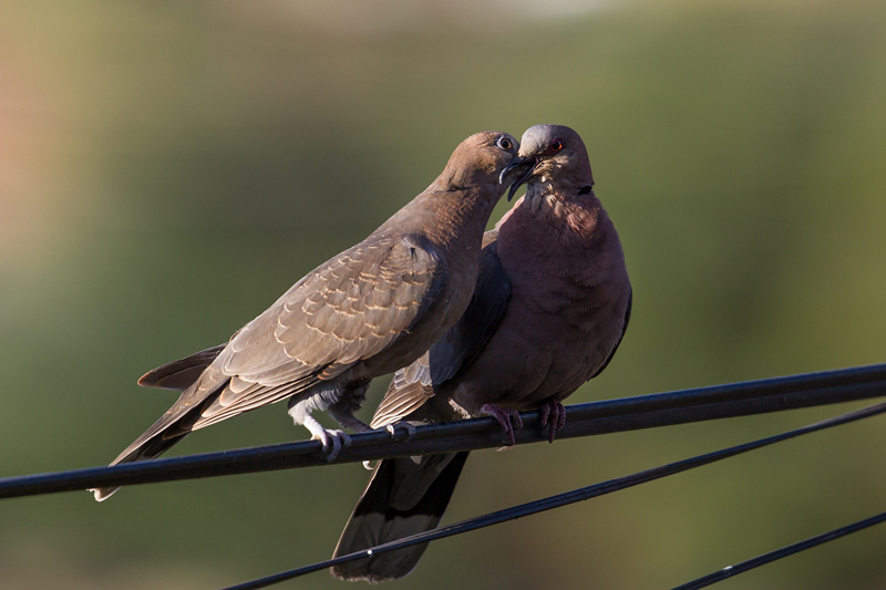 Adult (right) feeding juvenile (left).