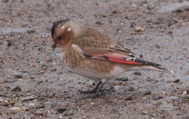 Beskrivelse: A split from Middle East Crimsonwinged Finch, Rhodopechys sanguinea