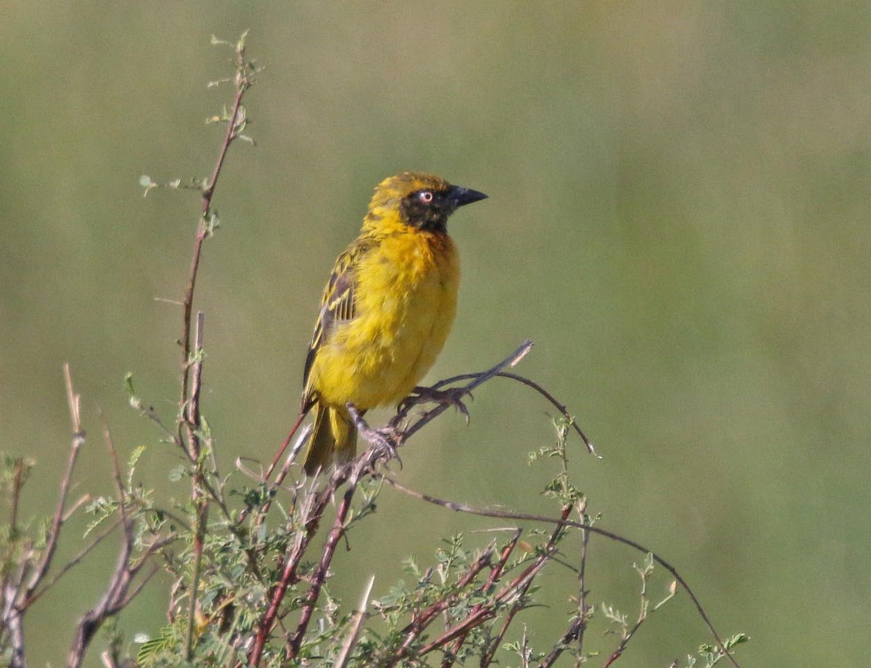 Beskrivelse: Denne væver forvirrer mig. Bestemt som Blommegul Maskevæver pga. af "chestnut crown" men ved forstørrelse af billedet er øjenfarven forkert og benfarven mistænkelig. Har dog for lidt sort i panden til at være en Lesser Masked Weaver eller en Speke's Weaver.