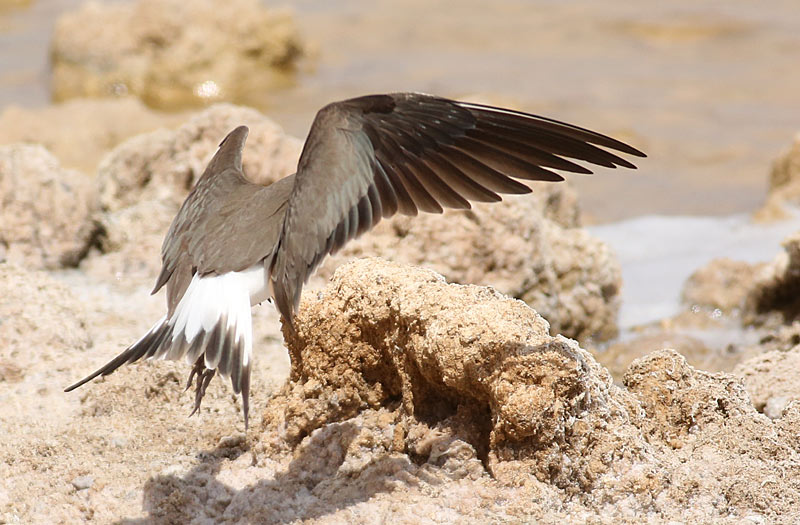 Beskrivelse: Fugl hvor den hvide vingebagkant er afslidt, som det undertiden ses på fugle om foråret. Læg mærke til artstypiske lange yderste halefjer og god kontrast mellem gråbrune dækfjer og mørkere svingfjer - samt hvidligt skaft på yderste håndsvingfjer. Fuglen havde desuden mørkt rødbrune undervingedækfjer