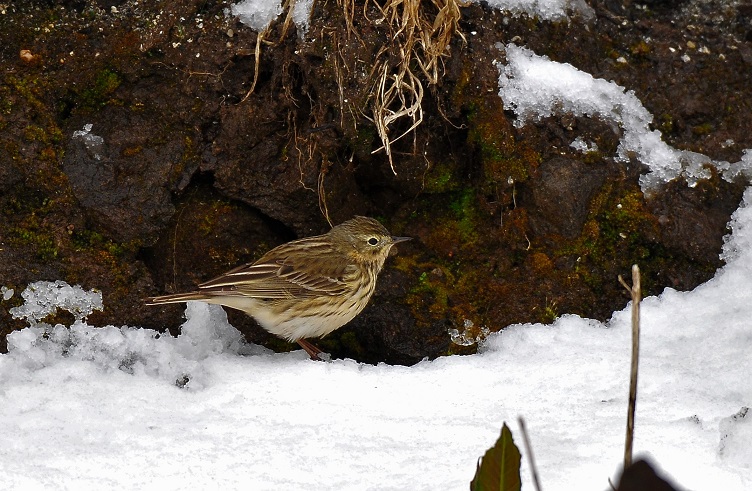 Titel: Meadow pipit with dark legs and dark bill.