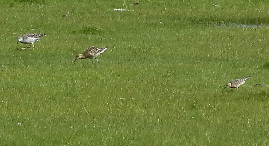 Beskrivelse: Prærieløber med Brushøns, hvor den forekommer meget lille og med en helt afvigende form: rundhovedet, kortnæbbet og meget slank og langstrakt med korte, gule ben; felthåndbøgerne viser arten sammen med brushane juv., med hvem den har skællet overside og gulbrun underside tilfælles, men ellers minder Prærieløber meget mere om en lille, sandfarvet hjejle med stort, rundt hoved og stort mørkt øje - helt andetledes end Brushanes skeptisk asiatiske i et hoved, der er for lille til den store krop med de alt for store fjer og alt for lange ben. Prærieløber er enormt aktiv og fiser konstant rundt efter føde, under sig ej ro og kan, hvis den står i pløjemarker (hvad den tit gør) surfe op og ned mellem plovfurerne, således at den kun ses i glimt. Den lille størrelse, ala Alm. Ryle, overrasker de fleste, der ser arten første gang: er den så lille?