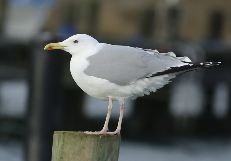 Beskrivelse: Typisk adult i vinterdragt med hvidt hoved, slankt grøntonet næb med smal rd gonysplet og mørk tegning nær næbspidsen samt blege ben.