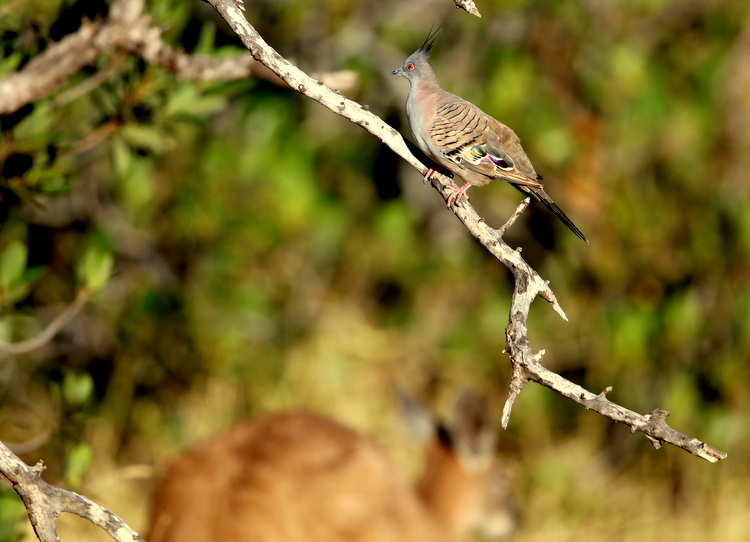 Beskrivelse: Typical WA landscape with wildlife: the pigeon and a Western Grey Giant Kangaroo