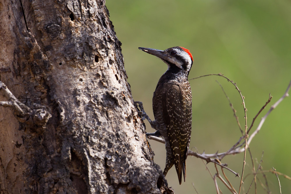 Titel: Bearded Woodpecker - (Dendropicos namaquus). Adult male, ssp Schoensis
