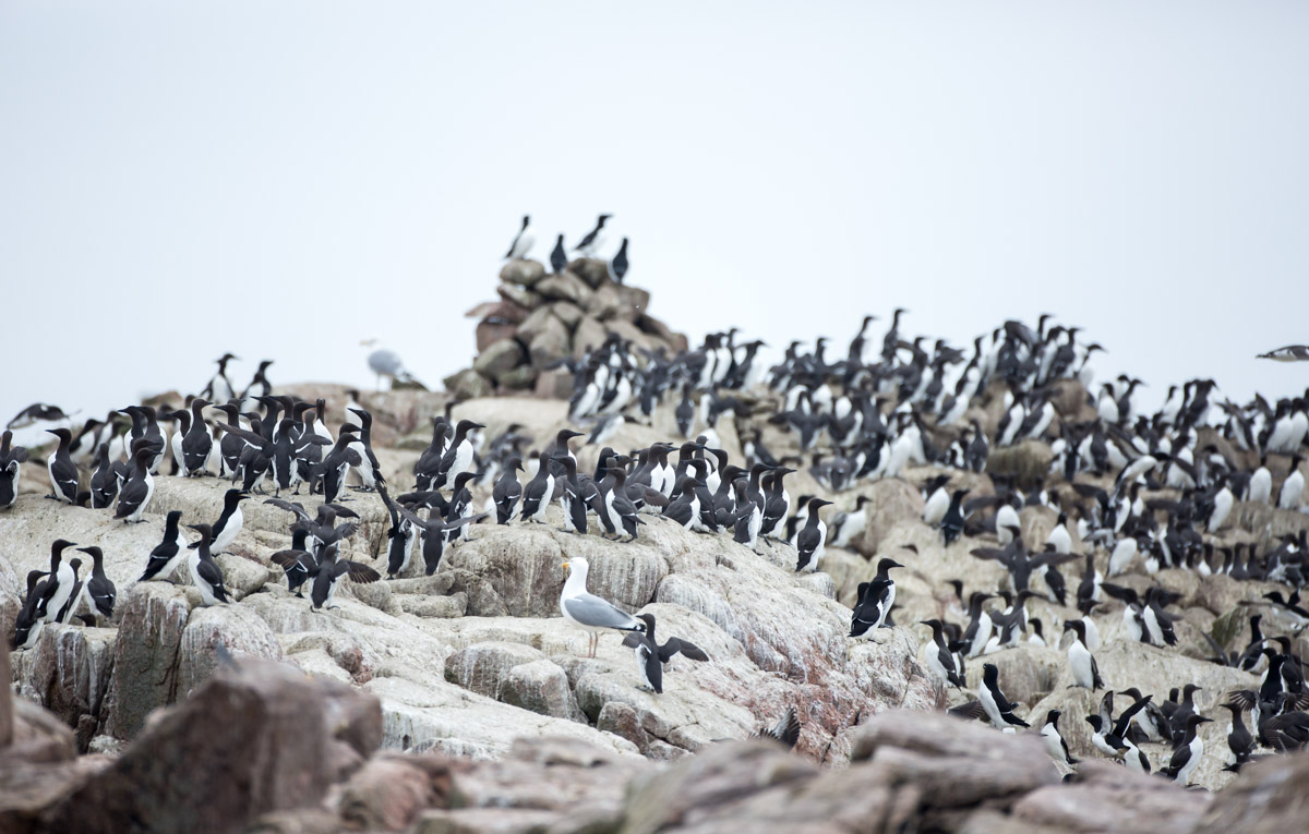Titel: Udsnit af kolonien af Lomvier (og alke) på Græsholm ved Christiansø