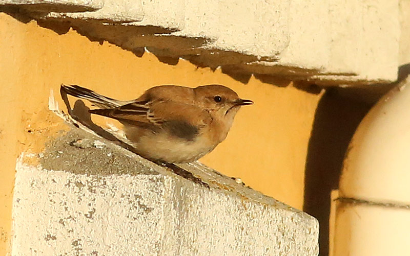 Beskrivelse: Årets julehit 2018. Varmt rusttonet overside samt brunorange brystbånd antyder, sammen med kort håndsvingfjersprojektion for arten, at den tilhører den vestlige form, hispanica. Der er indsamlet ekskrementer til analyse.