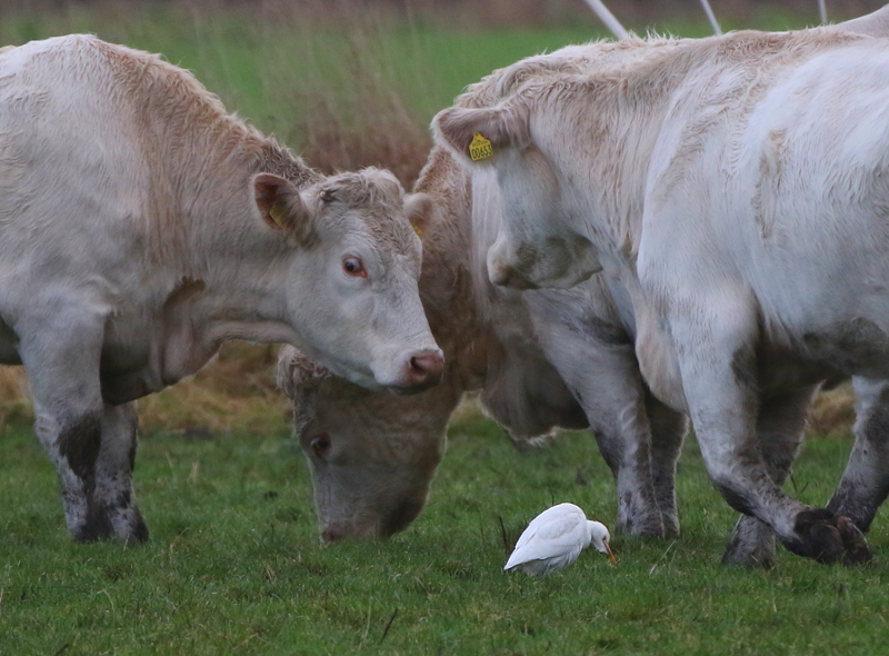 Beskrivelse: Min første kohejre. Jeg blev overrasket over, hvor lille den egentlig er. Ses tydeligt, når kohejren står sammen med en måge eller en ko.