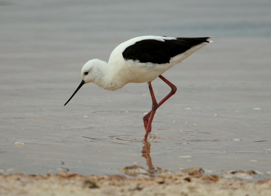 Beskrivelse: A Banded Stilt with NO band, is a juvenile Banded Stilt.
