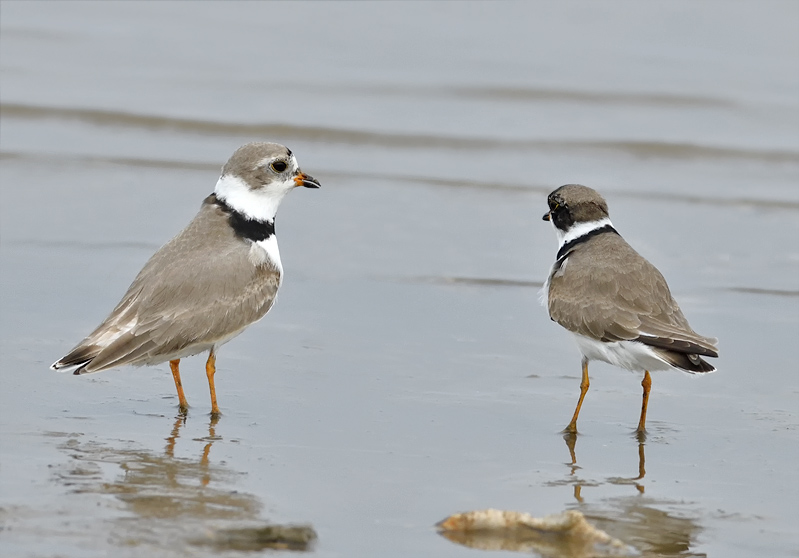 Beskrivelse: Am. Præstekrave mørkere ifht Piping Plover. De to arter kom ikke overens denne dag, med Piping Plover som den dominerende.