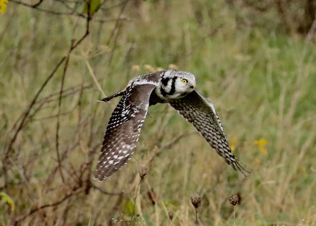 Beskrivelse: Formentlig ungfugl. Unge Høgeugler fælder tidligt, og fældningen af krop, hoved og vingedækfjer er gerne afsluttet i september (oktober). Uglen ved Hald har tilsyneladende endnu ikke skiftet de yderste armdækfjer.