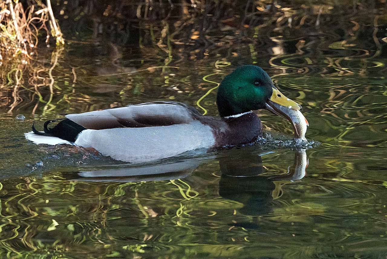 Beskrivelse: Fisken var eftertragtet blandt de andre gråænder, som jagtede anden der havde den. Fisken blev flere gange dukket under vandet, og rusket kraftigt fra side til side. Da jeg forlod stedet efter en halv time, var en tredjedel af fisken spist.
