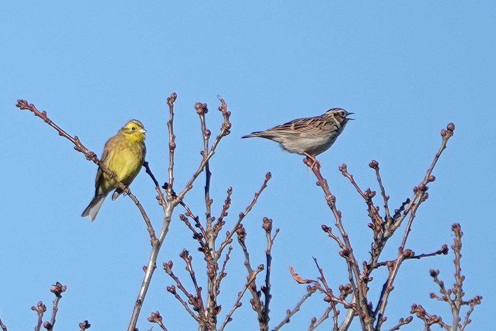 Titel: Duet mellem Gulspurv og Hedelærke