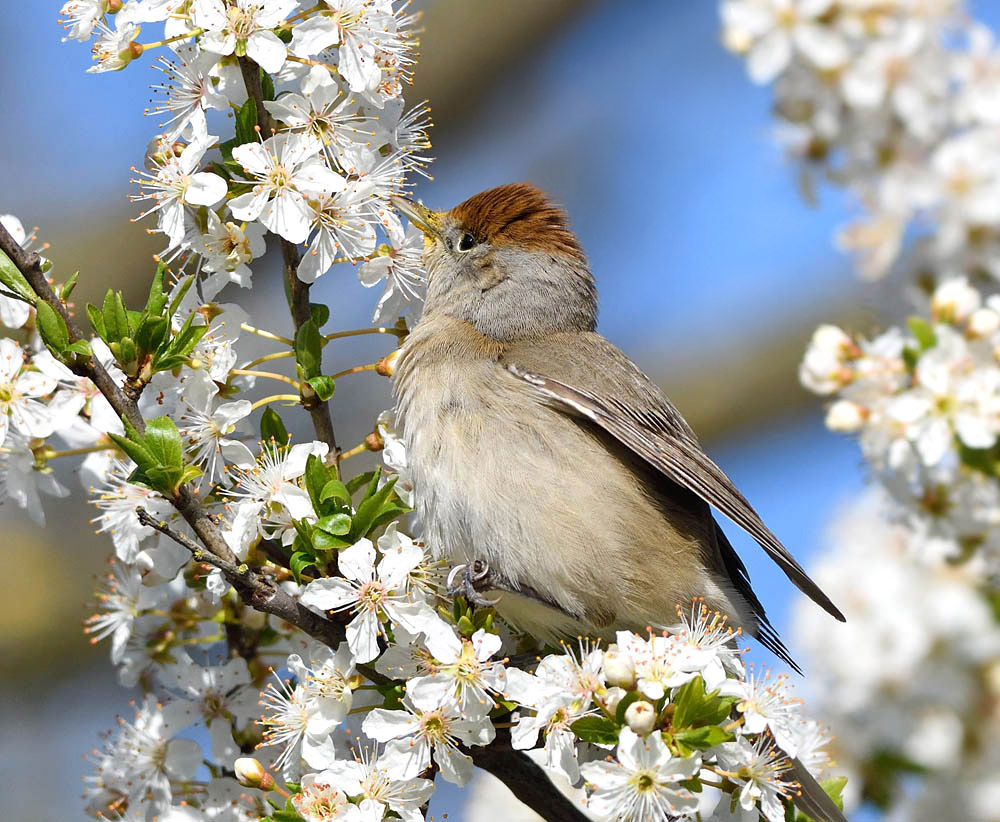 Beskrivelse: Her en Munk hun med gult pollenhorn – de gik flittigt i de hvide blomster for at suge nektar som et energisupplement.