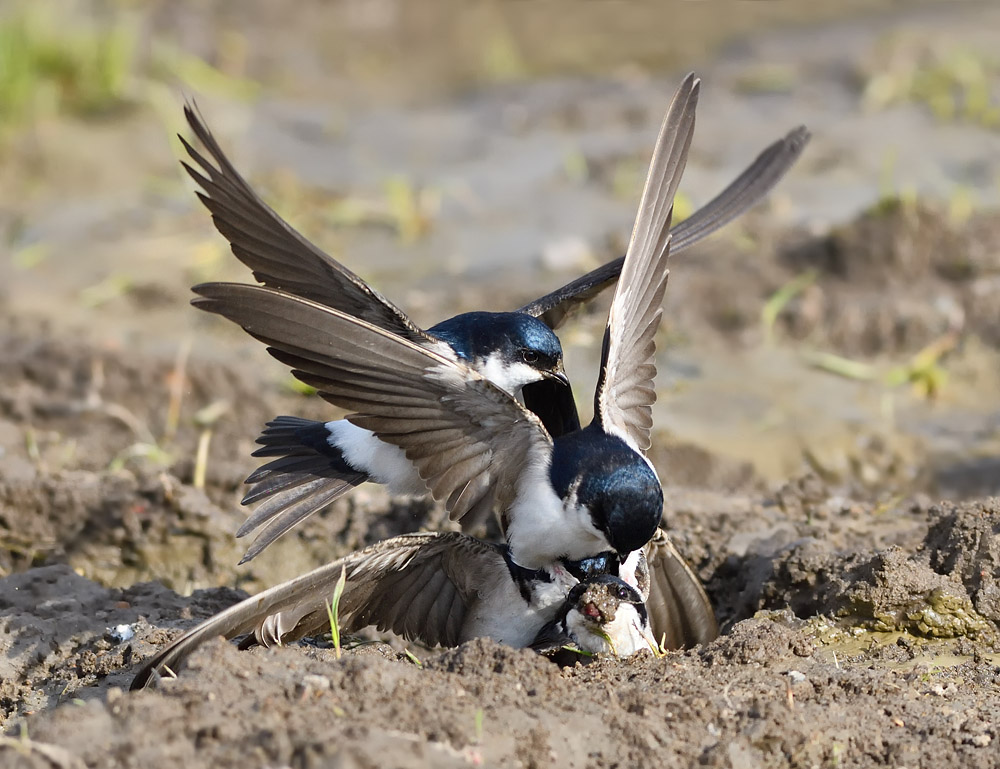 Beskrivelse: Oftest samler Bysvalerne fredeligt mudder side om side.