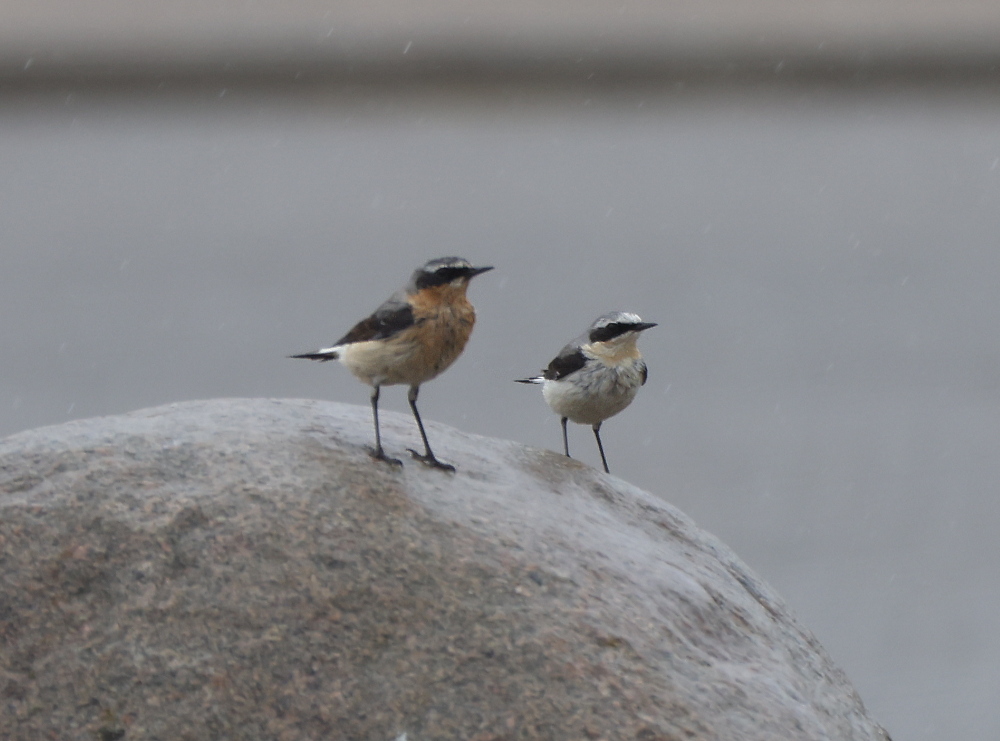 Beskrivelse: Jeg har haft flere dygtige ornitologer til at se på billedet. De fleste hælder til, at den venstre er en grønlandsk stenpikker? Nogen mener , måske.
