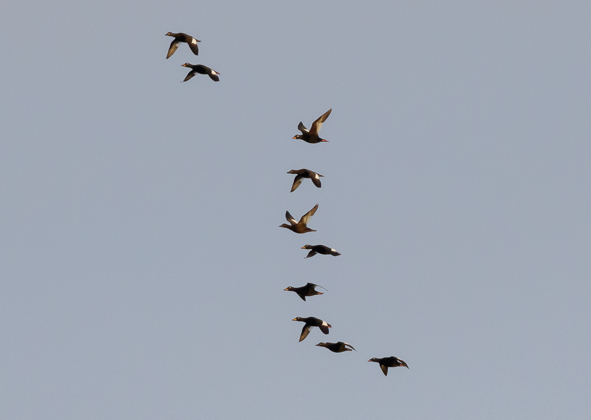 Beskrivelse: One Stejneger´s Scoter and Velvet Scoters.