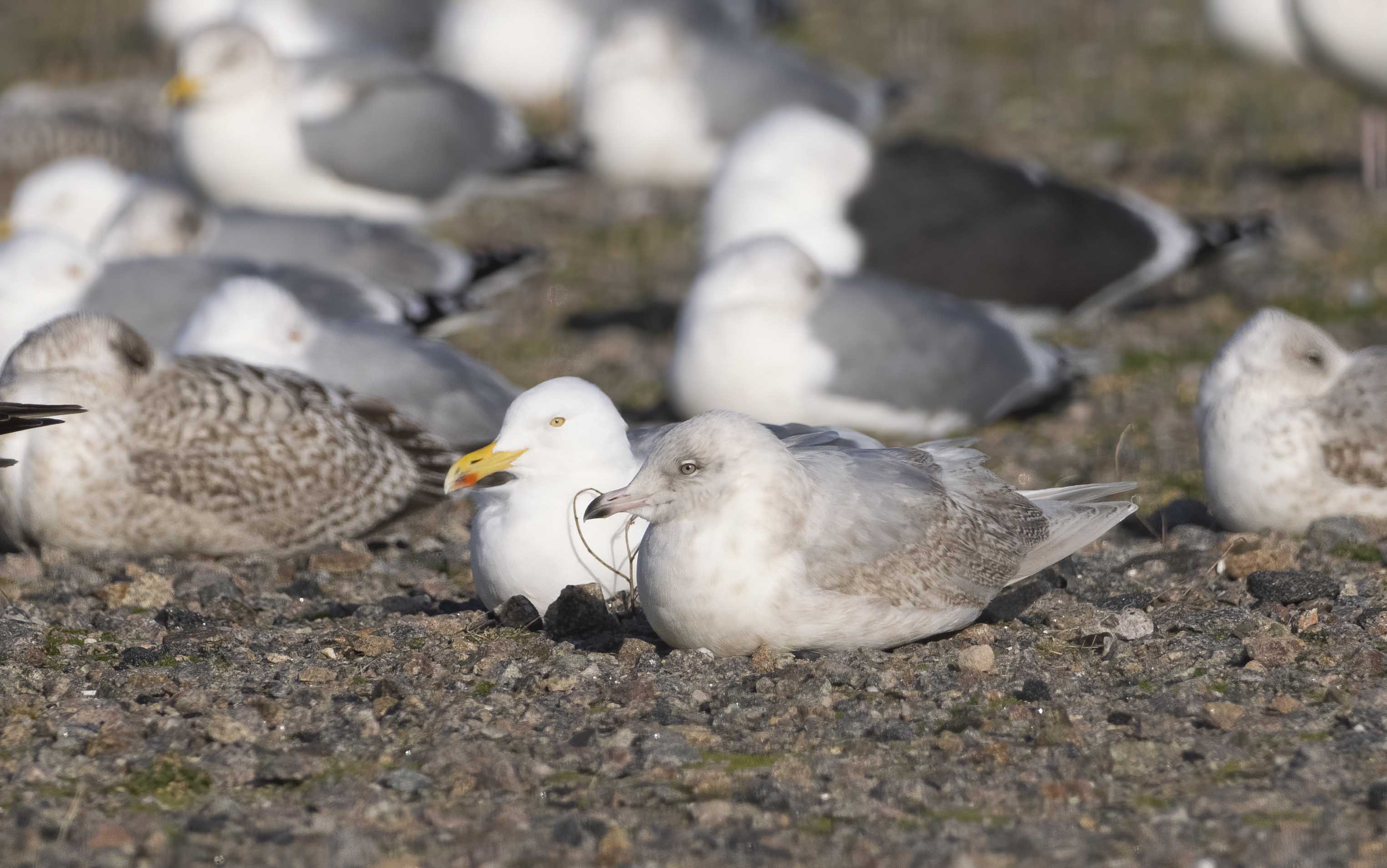 Beskrivelse: Denne 3K Hvidvingede Måge brugte jeg lidt ekstra tid på i dag. Især, naturligvis, på grund af de mørke markeringer i håndsvingfjerene. At der er tale om en Baffinmåge er muligt. Se desuden nærmere på de efterfølgende flugtfotos. Kommentarer er meget velkomne.