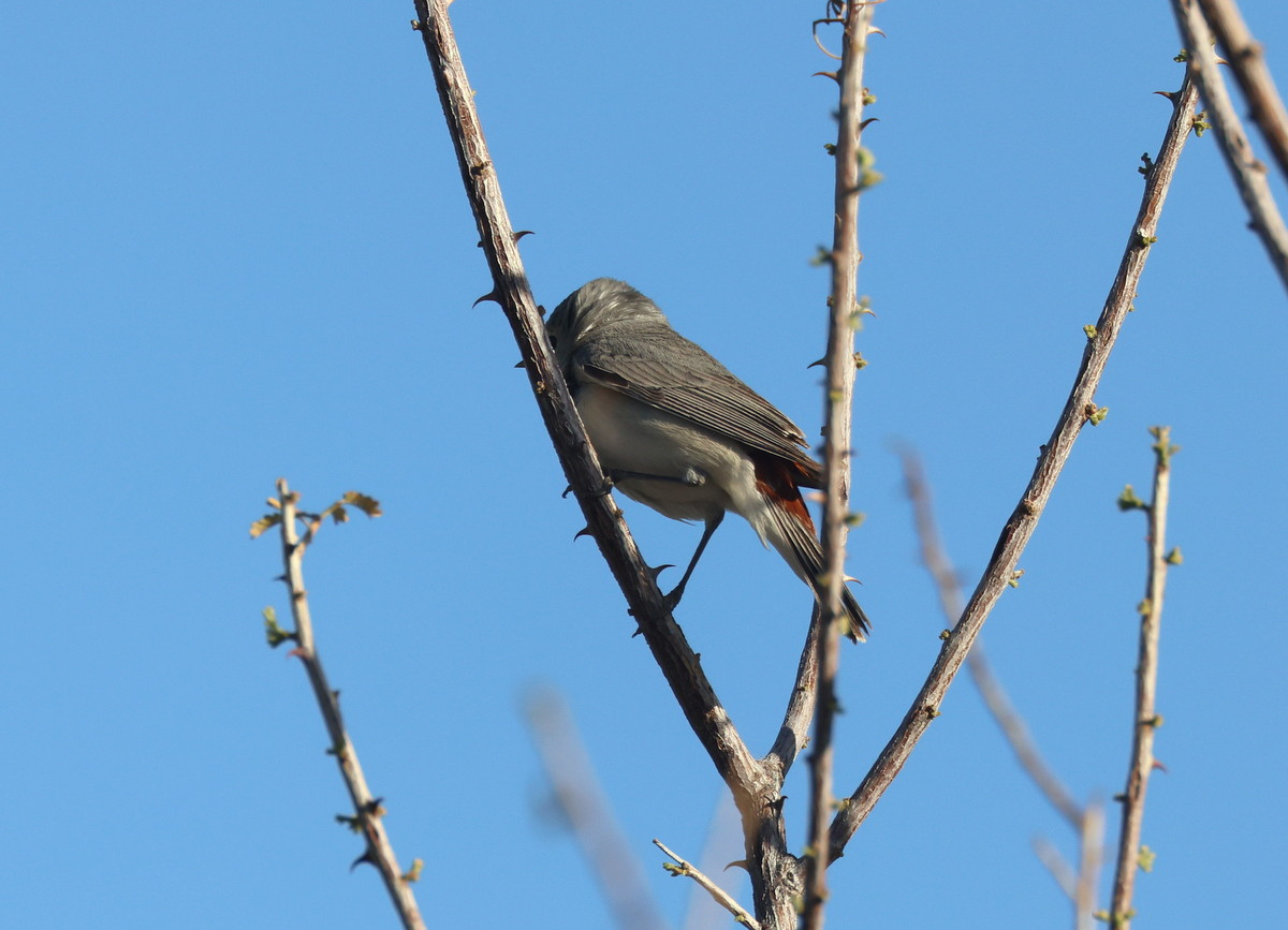 Titel: note the chestnut-brown upper tail - important ID for this othewise plain gray bird