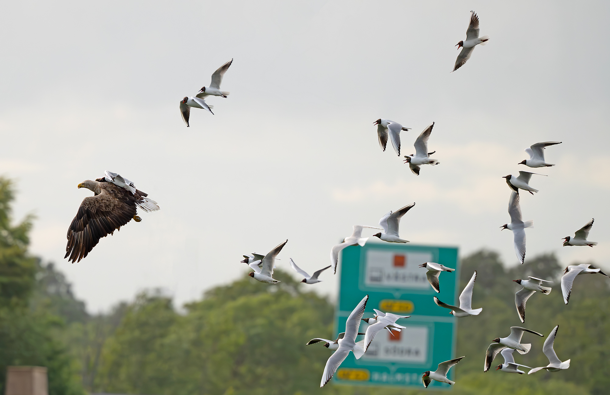 Beskrivelse: Den upopulære Havørn fik samtlige rasende Hættemåger på vingerne,