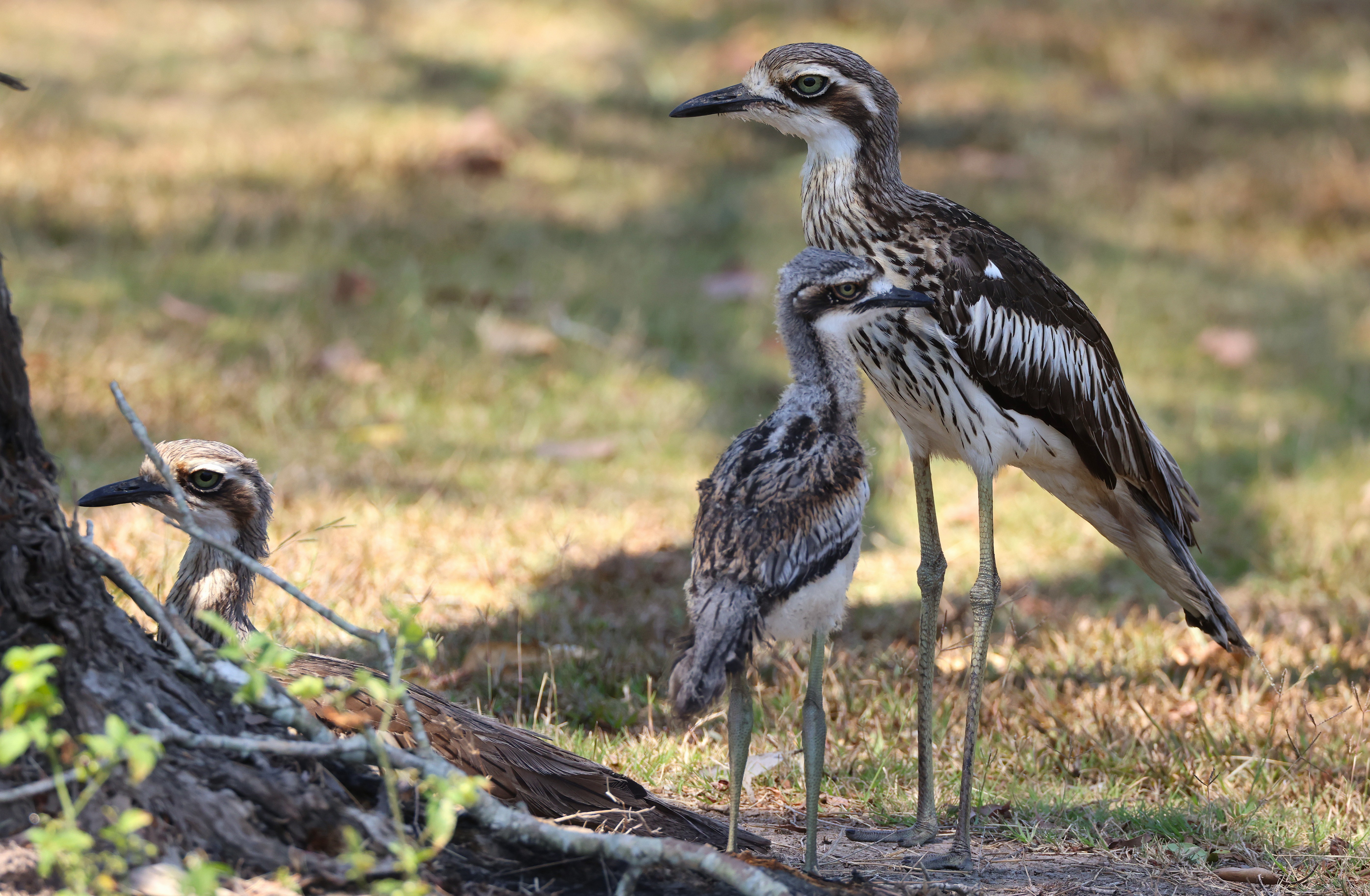 Beskrivelse: Here two adult birds, and one of two juvenile birds. Waiting in the shade for the night to come.... 38 + Celsius