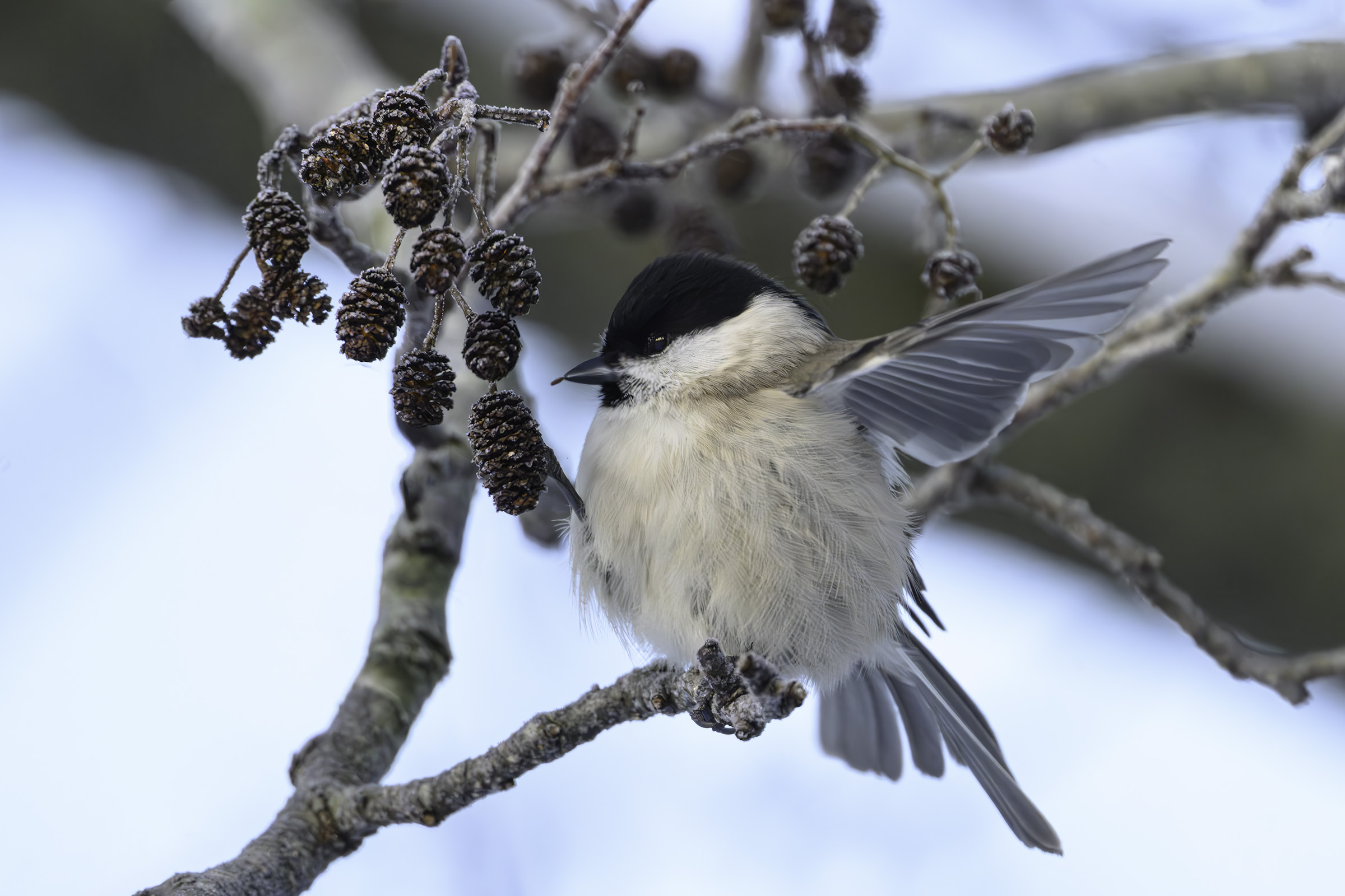 Titel: Sumpmejse fouragerer på ellekogler
