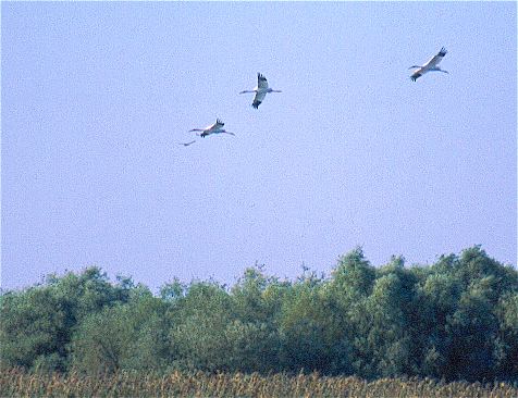 Beskrivelse: This photo showing three adult birds was taken on the 5th October 2001 at the only place in the Western Paleartic where Siberian White Crane is regularly seen.