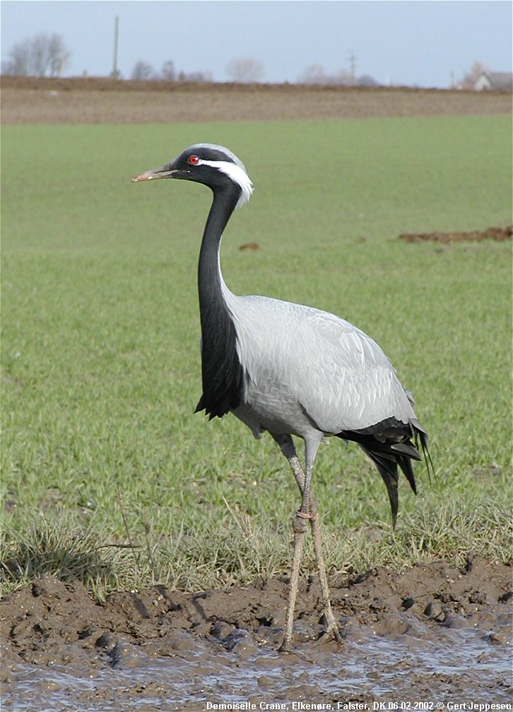 Beskrivelse: A very surprising bird on a Danish field in midwinter! This bird wore a ring and is surely an escapee. The ring could only be seen at a distance less than 150 meters. The bird was probably first seen January 31st when a "crane" flew south only a few kilometers to the north of the field where it was found February 2nd.