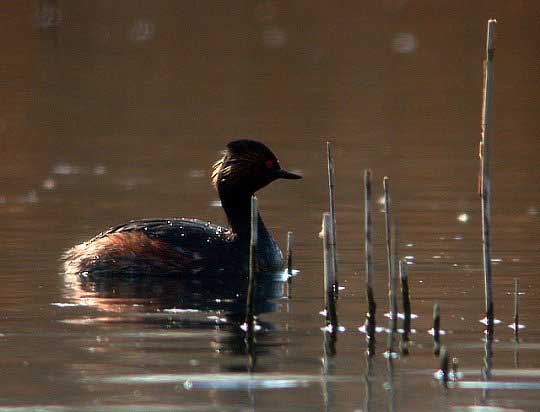 Beskrivelse: Black-necked Grebe is a scarce breeder in Denmark. This photo has been taken with a digital camera at Sømosen near Copenhagen, where the grebes are rather approachable.