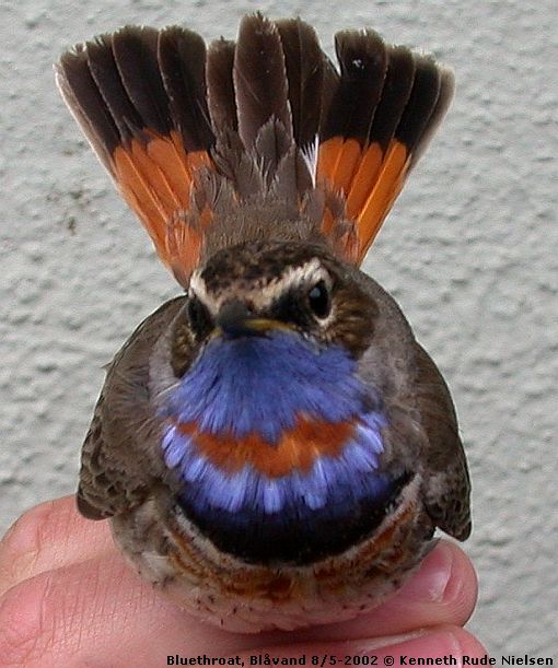 Beskrivelse: This 2cy male Red-spotted Bluethroat was ringed by Kenneth Rude Nielsen.