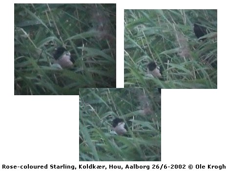 Beskrivelse: Rune Sø Neergaard found this adult male Rose-coloured Starling in the evening on the 25th of June at Koldkær near Aalborg. It was the 14th record this year in Denmark, the largest Danish influx ever.