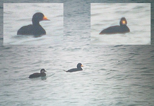 Beskrivelse: Fuglen ses i Øster Hedekrog, Samsø 500-1000m øst for den lokale skydebane. Skydebanen ligger langs en række høje træer i den vestlige ende af Øster Hede. Anden har hele tiden opholdt sig sammen med en sortand hun og de ligger cirka 100m fra land.