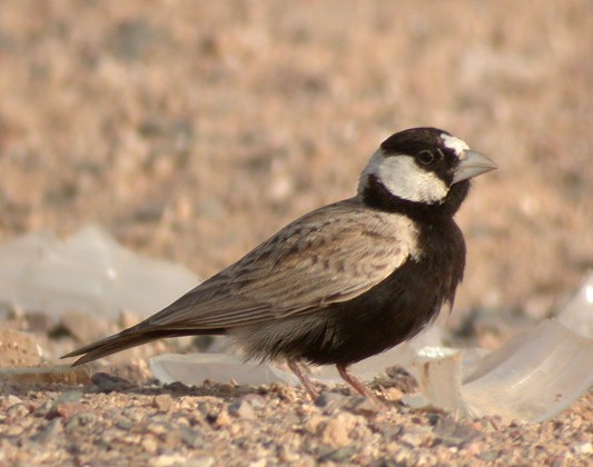 Beskrivelse: Stor var overraskelsen da vi knapt var kommet ind i Bir Shalatein førend vi stod og kiggede på en flok sortissede lærker bestående af ca. 12 individer, heraf flere ivrigt syngende. En art som ifølge litteraturen skulle forekomme her på kanten af VP’s udbredelse men som kun meget få har haft held med at få at se. Endnu større var overraskelsen dog da vi dagen efter fandt en flot han ca. 40 km. syd for Safaga i et område den så vidt vides ikke før har været registreret.