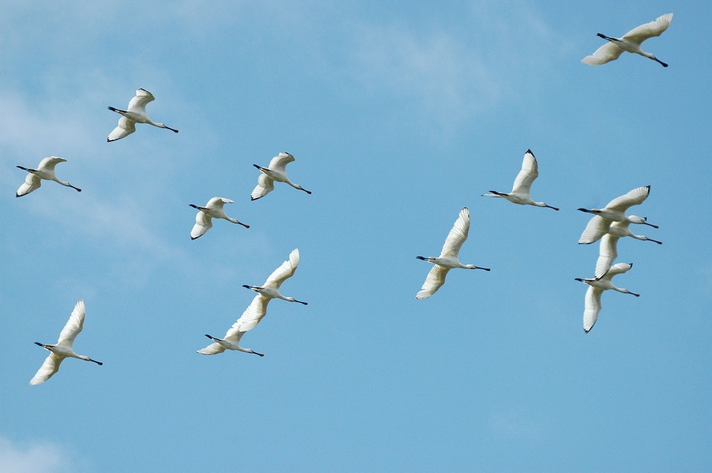 Har jeg ret i, at der er 3 adulte, 2 2k (ca. 1 år gamle) og 8 1k (juvenile) skestorke på dette foto?
