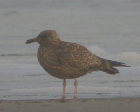 Tror på en meget mørk hjemlig Sølvmåge, da den ser vel plettet/stribet ud på undersiden (amerikansk er typisk langt mere udvandet og ensartet, ala en formørket Gråmåge). Desuden ser de store dækfjer vel lysbåndede ud. Hvordan så hale- og gumpetegning ud? Se også en lignende fugl fra Gilleleje, fra 6.12 2004 (fotograferet af Rsamus Strack)