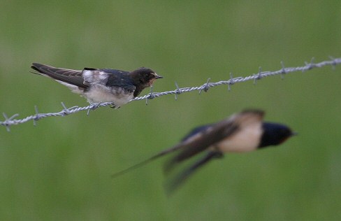 Beskrivelse: Fotos fra Sneum Engsø d. 21.04.04 - dels af Landsvale med rødligt bryst samt 2 der ligner ungfugle - men 21. april!! Hvornår kommer ungfuglen i voksendragt? vh Peter