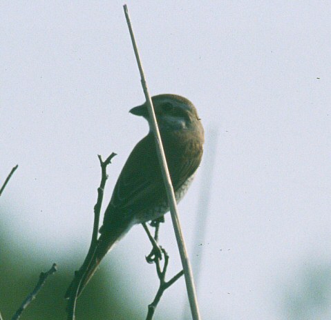 Rødrygget Tornskade er taget 1.6.2004 ved Sneum. For mig var den meget usædvanlig ved at være ensfarvet brun fra halespids op over gump, ryg og til hoved. Halen uden lyse/hvide ydre halefjer, og min første tanke var Brun Tornskade. Måske er også denne fra en østlig oprindelse.