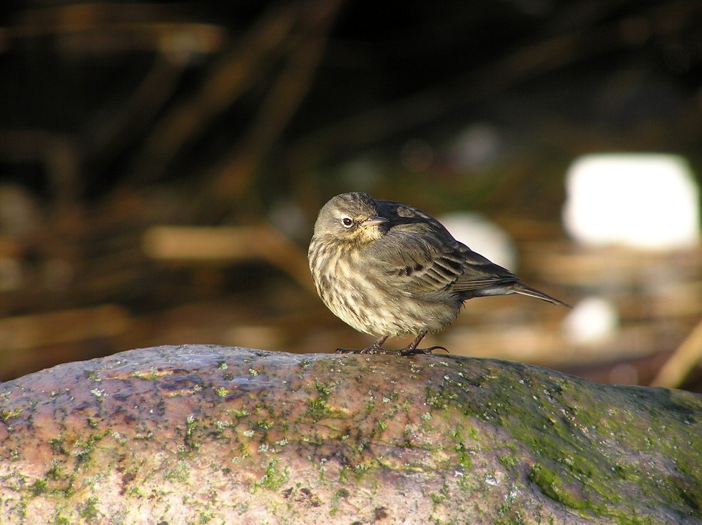 Synes at kunne se et olivent anstrøg på skulderfjer og i det bageste vingebånd, hvilket - i lighe med de diffuse, og ret brede mørke striber på flankerne - peger på en gråtonet Skærpiber. For nogle år siden sås en større gruppe Skærpibere i Helsingør. Her kune man fint se variationen hos arten; der var her en glidende overgang fra fugle, der så ud som på dette foto, til de klassiske olivenfarvede fugle med tydelig gultoning i dragten.