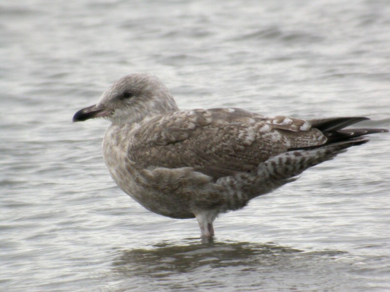 Jeg synes nok at denne fugl af form ligner mere end sølvmåge-type end en sildemåge. Et meget mørktegnet exemplar, som jeg regnes med fotografen har set mere på, siden der står "smithsonianus?". Blot på en stående fugl kan der næppe foretages en sikker bestemmelse til form. Mit bedste bud er en sølvmåge med afvigende mørke nederste skulderfjer. det er et bud, ikke en definitiv bestemmelse.