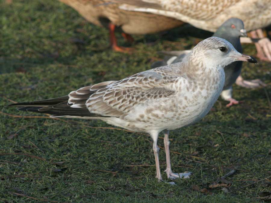 2: Dragten påfaldende frisk og juvenil, kun med mindre partier af gråt (de fleste hjemlige ynglefugle har mere slidt dragt med rent grå "sadel" her ved juletid). En i forhold til hjemlige fugle lignende fældning kan ses hos nordlige Stormmåger indenfor canus´ yngleudbredelse.
